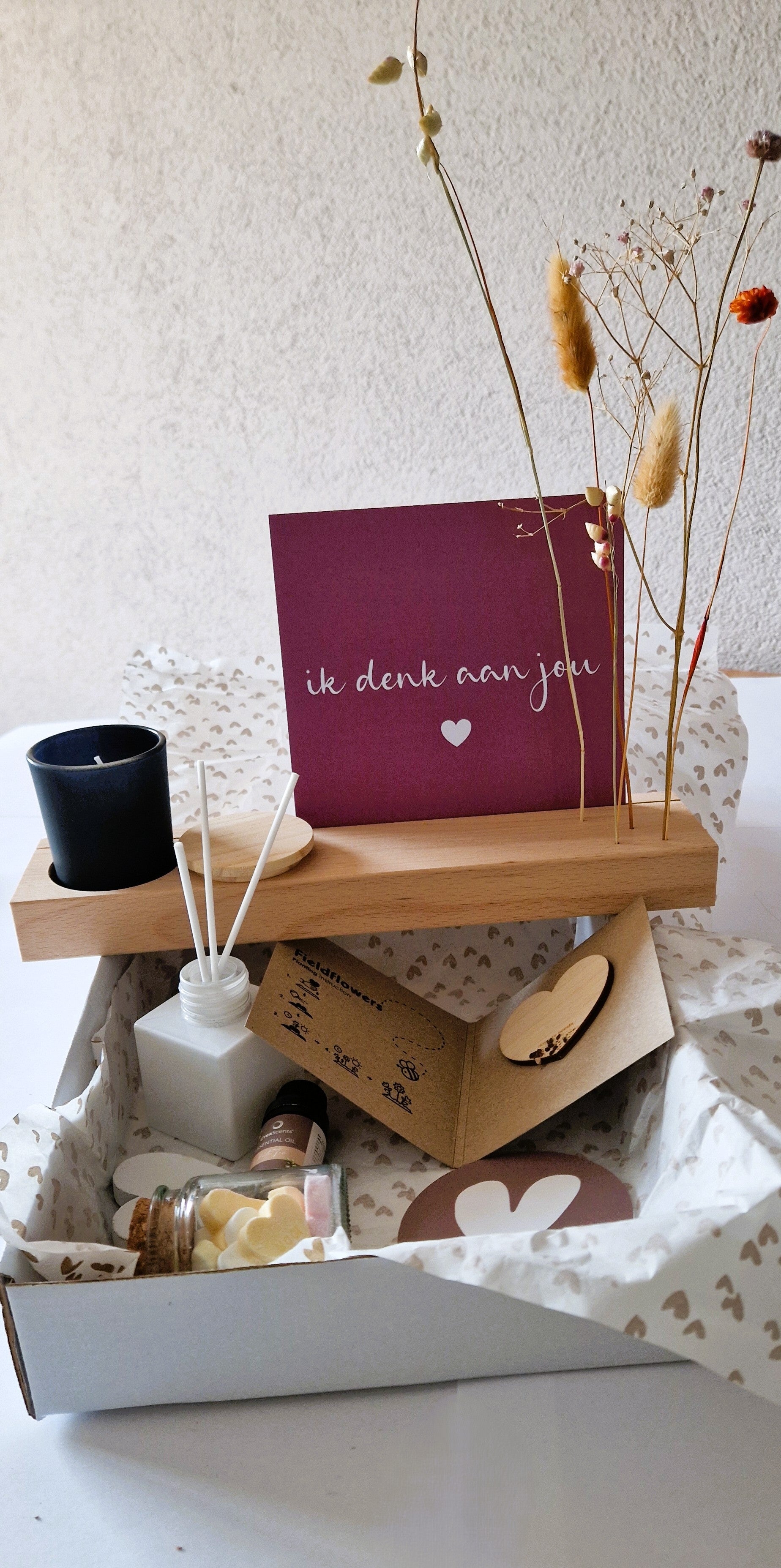 Met deze giftset help je om herinneringen vast te houden, een blijvend symbool van wat waardevol is. Voor momenten die je niet wilt afdoen met even een kaartje of bloemetje sturen.